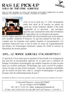 Ras le pick-up – Solo de théâtre agricole, suivi d’un temps d’échanges