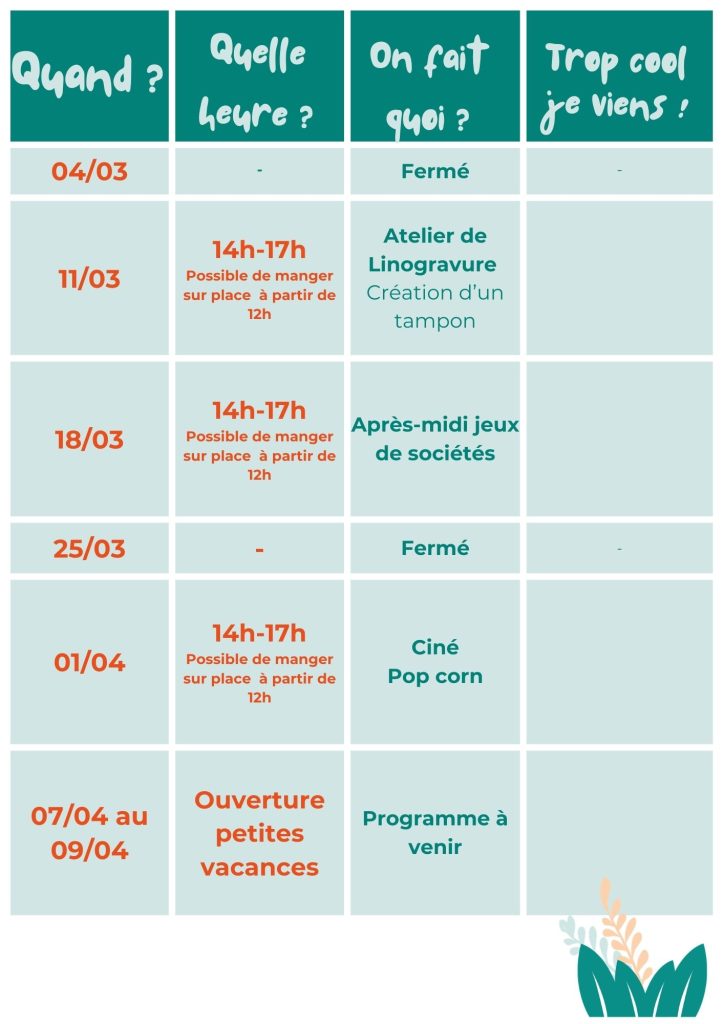 Le programme de mars/avril au Local Jeunes de la Fabrique