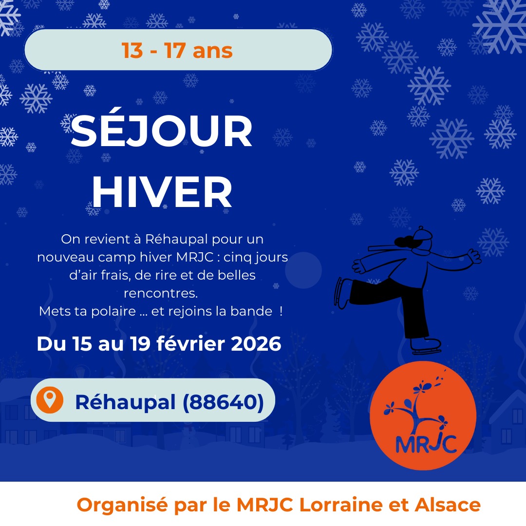 Ce séjour d’hiver est proposé par le MRJC Lorraine, en lien avec le MRJC Alsace. Il est destiné aux jeunes entre 13 et 18 ans qui souhaitent se détendre et profiter de la montagne vosgienne.